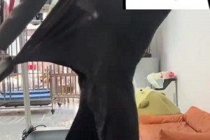 男子正做好准备开直播,家里的狗狗死命拽着裤子不放