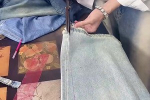 男子裁缝手艺精湛出众,巧手将阔腿裤改成直筒裤