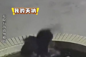 小狗好奇心作崇跳上水池,不承想脚滑掉了进去,怎么扑腾也出不来