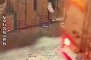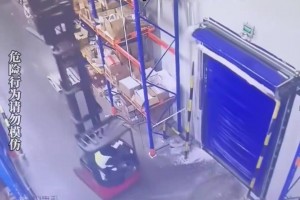 工人师傅忘记降叉齿,就直接开出门结果发生意外